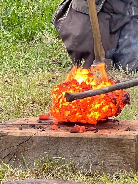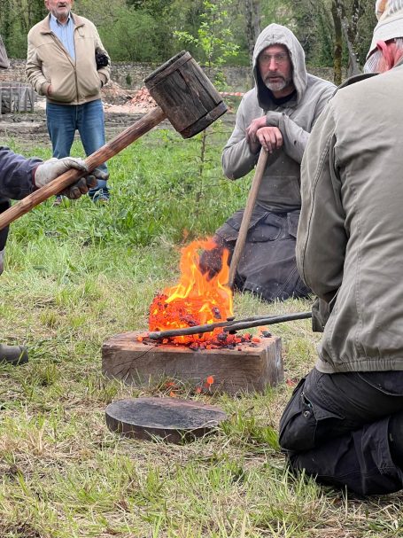 - l’Association 3F3M venue avec son bas fourneau mobile… duquel a été extrait en fin de journée un « massiot », petite masse de fer impur que les forgerons ont « frappée ».
