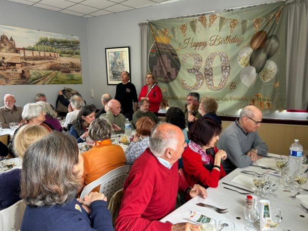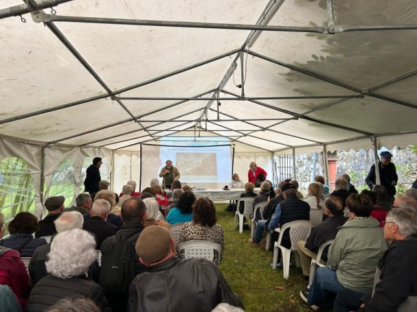 Elle a été suivie d’une conférence donnée par Olivier GENEVOIS, actuel propriétaire des lieux, passionné par leur histoire et leur spécificité. Il a présenté les anciens maîtres de forge d’Ans : familles Hautefort d’Ajat, Bertin et Festugière. Ces derniers marquant l’apogée de la forge avant sa fermeture en 1862. Il a également évoqué les importants travaux de restauration récents réalisés (hauts-fourneaux) et en cours (moulerie),